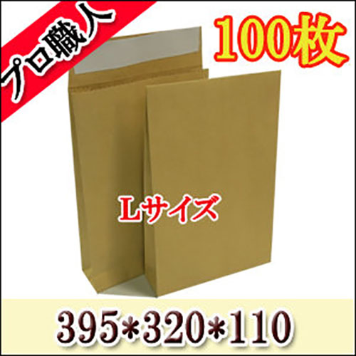 テープ付き 宅配袋 角底袋 紙袋 Lサイズ(395*320*110) 超厚手(約120g) 100枚入