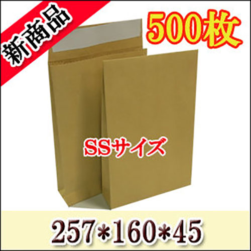 テープ付き 宅配袋 角底袋 紙袋 SSサイズ(250*160*45) 超厚手(約120g) 500枚入