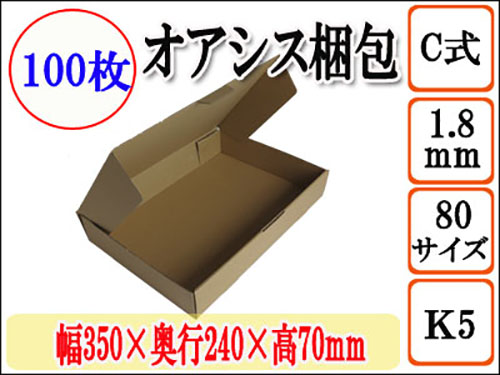 強化ダンボール 80サイズ 100枚セット (350X240X70mm 厚1.8mm) Yシャツの梱包に最適